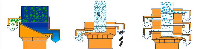 直排篩主要適用于物料大處理量除雜、疏松,設(shè)備安裝一層篩網(wǎng)將成品料與大雜質(zhì)分離,通過(guò)振動(dòng)篩電機(jī)產(chǎn)生激振力晃動(dòng)篩框,物料迅速通過(guò)篩網(wǎng)在位于篩機(jī)正下方的成品料出口排出,物料直接排放有更大的處理量,達(dá)到很好的篩分效果。