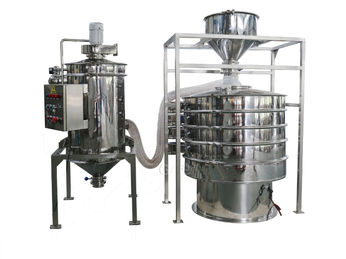 食品行業(yè):食品行業(yè)要求的衛(wèi)生標(biāo)準(zhǔn)非常高。整機(jī)采用304或316不銹鋼制造,與物料接觸的部位不允許有任何雜質(zhì)污染。不銹鋼振動(dòng)篩的密封件符合食品衛(wèi)生標(biāo)準(zhǔn)。