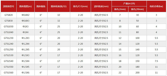 大型滾筒篩沙機技術參數